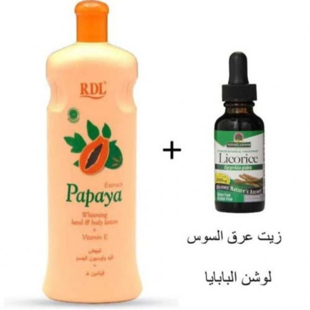 مجموعة العناية لتفتيح البشرة لوشن البابايا مع زيت عرق السوس: